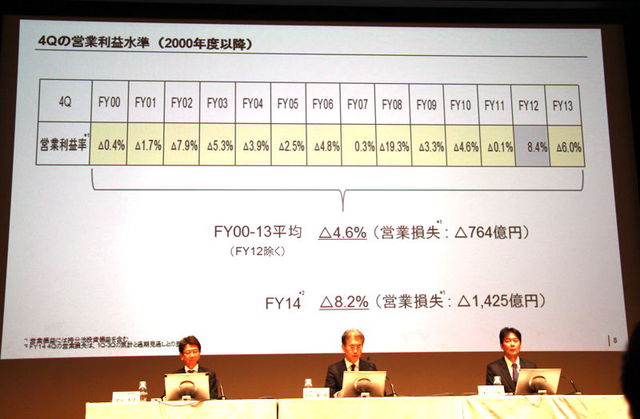 同じく2000年度から2013年度までの、第4四半期の営業利益率推移