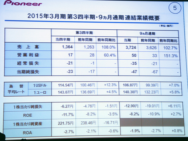 パイオニア、'14年1Qは営業損益大幅改善 − 家庭用機器はAV減少もDJやCATVなど増加