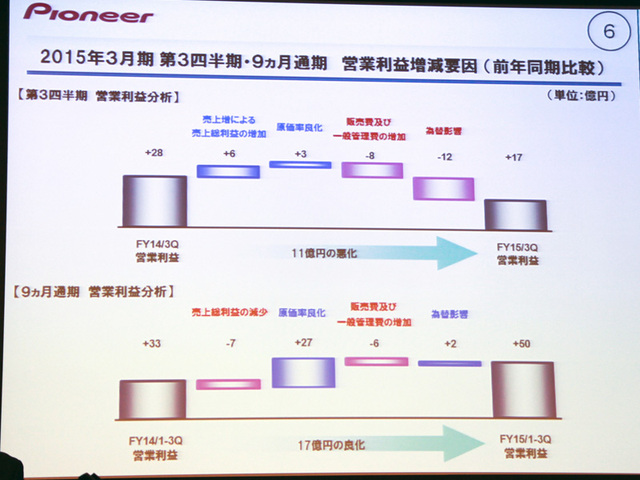 パイオニア、'14年3Q決算発表 − 累計営業利益は計画を上回る50億円