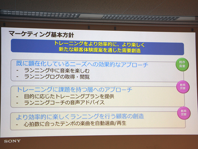 ソニーでは、ランニング市場における既存ニーズへの対応はもちろん、新しい価値提案によって新規需要の開拓も狙う