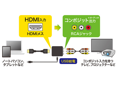 サンワサプライ、HDMI信号をコンポジット映像&アナログ音声に変換するコンバーター