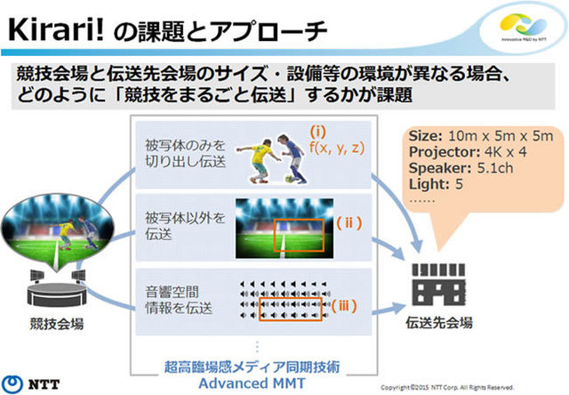 HOME > ニュース > AV&ホームシアターニュース ホログラフィックやプロジェクションマッピングを活用 NTT、スポーツの試合などを「まるごとリアルタイムに配信する」伝送技術 ファイル・ウェブ編集部 2015年02月18日 前の写真へ 伝送技術イメージ 前の写真へ この写真の記事へ 関連リンク 本件の詳細 NTT R&Dフォーラム2015