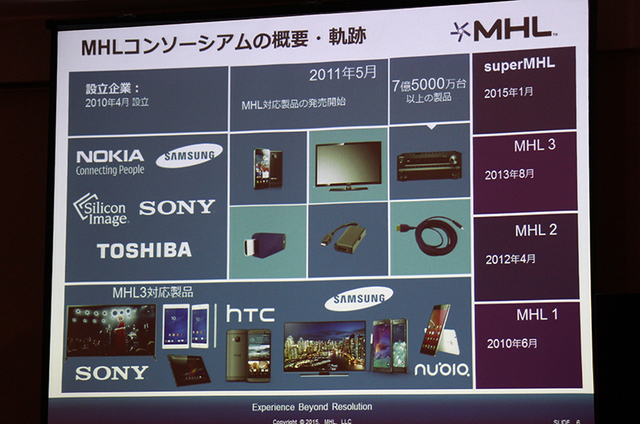 MHLはSilicon Image社が開発し、主要携帯電話メーカーが協力して規格化