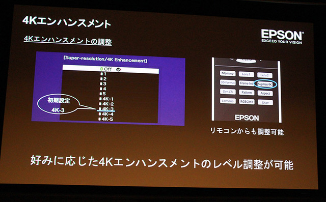 「4Kエンハンスメント」でエンハンスメントのレベル調整が可能