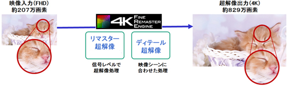 2種類の超解像技術を組み合わせた「4Kファインリマスターエンジン」を搭載