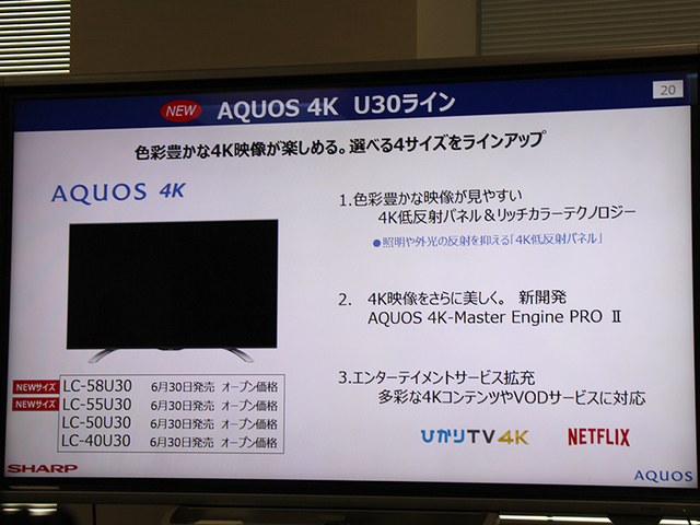 シャープの4K AQUOS 「UD1」、4K/60p入力に年内対応