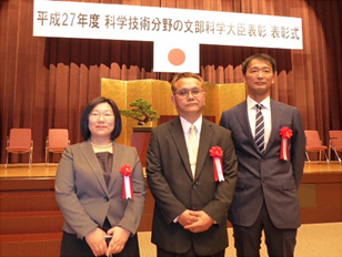 HOME > ニュース > AV&ホームシアターニュース 「広視野角で低消費電力を実現したIPS方式液晶パネルの開発」で受賞 パナソニック液晶ディスプレイから3名が文部科学大臣表彰科学技術賞受賞 編集部:近藤 貴彦 2015年04月16日 左から今城氏、小野氏、桶氏 この写真の記事へ 関連リンク 本件の詳細 パナソニック液晶ディスプレイ(株)