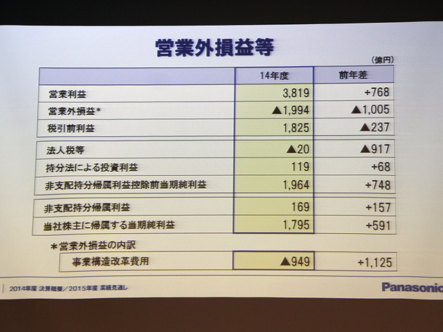 パナソニック、'14年は大幅増益1,795億円の黒字。'15年は成長路線へシフト
