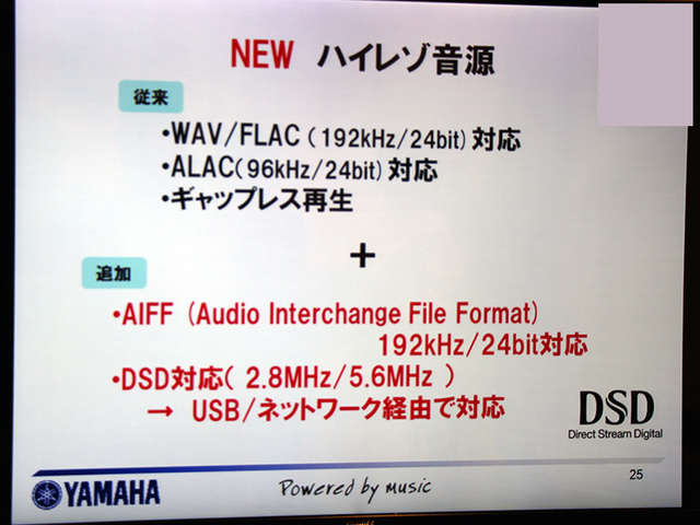 新たにDSD 5.6MHz、AIFF 192kHz/24bitまでのフォーマットに対応した