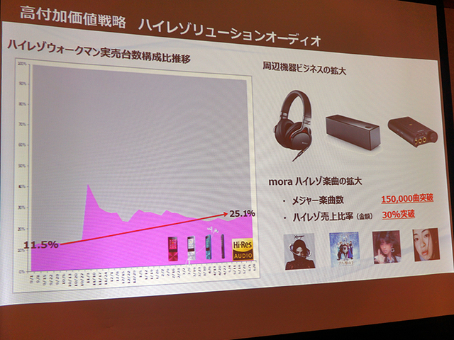 ウォークマンでは台数ベースで4分の1がハイレゾ対応モデルを占めるまでに伸長