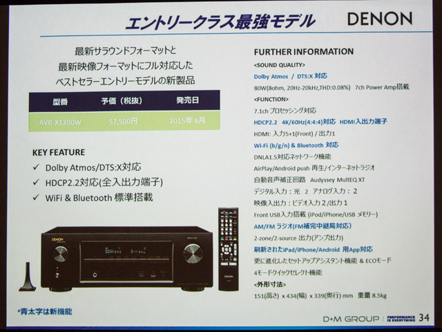デノン、DTS:X/ドルビーアトモス対応のエントリーAVアンプ「AVR-X2200W/X1200W」