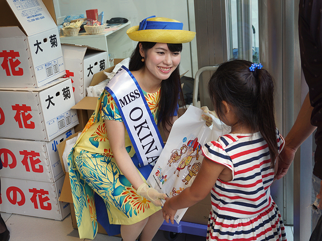 先着で阿波根さんと高江洲さんから沖縄の切り花などがプレゼントされた
