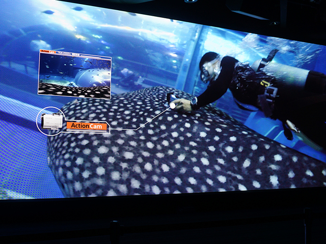 ジンベイザメにアクションカムを取り付けて撮影した4K映像を上映