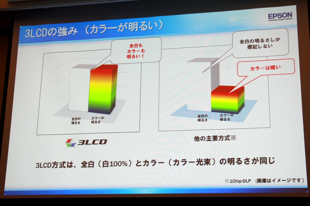 3LCD方式は他の主要方式に比べて最大3倍の明るさを実現