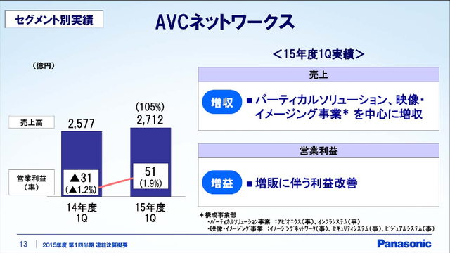 パナソニック、'15年度第1四半期は「順調なスタート」。テレビなどAVCも増収増益