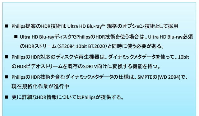 Ultra HD Blu-rayにおけるPhilips提案HDR技術の扱い
