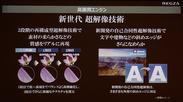 HOME > ニュース > AV&ホームシアターニュース 7,000nitの試作機も開発、HDRも「とことんやる」 REGZA新最上位機は「史上最高画質」へ。1,000nit HDR/新LED駆動/新エンジンなど搭載【動画追加】 編集部:小野佳希 2015年09月16日 前の写真へ 次の写真へ 2段階の超解像処理でさらなる高画質化を実現 前の写真へ 次の写真へ この写真の記事へ 関連リンク 東芝 REGZA公式ページ 東芝“REGZA”新モデルのティザーサイト