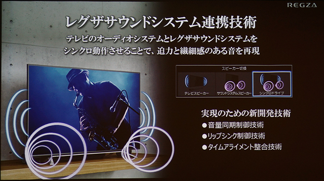 HOME > ニュース > AV&ホームシアターニュース 7,000nitの試作機も開発、HDRも「とことんやる」 REGZA新最上位機は「史上最高画質」へ。1,000nit HDR/新LED駆動/新エンジンなど搭載【動画追加】 編集部:小野佳希 2015年09月16日 前の写真へ 次の写真へ レグザサウンドシステムとテレビ本体のスピーカー両方をシンクロさせて使用 前の写真へ 次の写真へ この写真の記事へ 関連リンク 東芝 REGZA公式ページ 東芝“REGZA”新モデルのティザーサイト