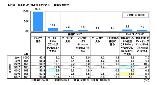 HOME > ニュース > AV&ホームシアターニュース テレビ視聴に関する調査を実施 「ネットしながらテレビ」が4割、「4K・VODで観たいコンテンツは映画」 − スカパー!調査 編集部:近藤 貴彦 2015年09月29日 前の写真へ Q:日頃、「何を使って」テレビを見ているか 前の写真へ この写真の記事へ 関連リンク 本件の詳細(PDF) スカパーJSAT(株)