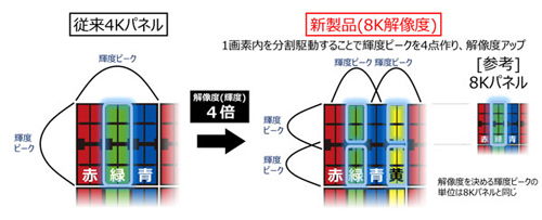 HOME > ニュース > AV&ホームシアターニュース HDRも対応予定。通常の4Kテレビ60型も シャープ、8K解像度を実現 “AQUOS 4K NEXT” に70型モデル 編集部:風間雄介 2015年10月05日 前の写真へ 4原色パネルを分割駆動することで解像度を4倍に引き上げる 前の写真へ この写真の記事へ 関連リンク 本件のニュースリリース シャープ