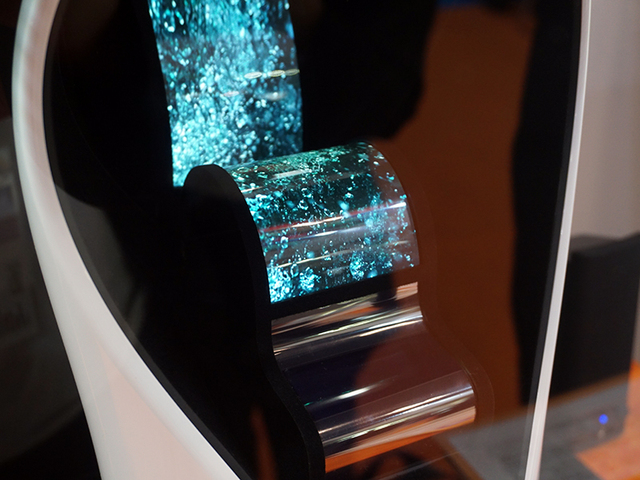 ジャパンディスプレイは薄さ0.05mmで曲げられる極薄有機ELディスプレイを展示