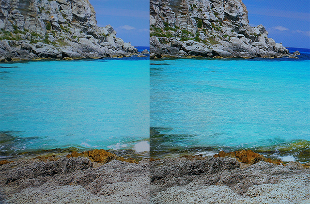HDR効果の適用イメージ。波の表現などに効果の違いが見てとれる