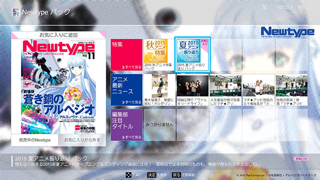 HOME > ニュース > AV&ホームシアターニュース BtoBサービス「みるコレ パートナーパック」第一弾 東芝、レグザで『月刊ニュータイプ』によるアニメ情報などを見られる「Newtype パック」提供開始 ファイル・ウェブ編集部 2015年10月14日 次の写真へ 「Newtype パック」トップ画面イメージ 次の写真へ この写真の記事へ 関連リンク 本件のニュースリリース 東芝