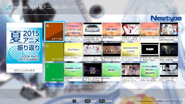 HOME > ニュース > AV&ホームシアターニュース BtoBサービス「みるコレ パートナーパック」第一弾 東芝、レグザで『月刊ニュータイプ』によるアニメ情報などを見られる「Newtype パック」提供開始 ファイル・ウェブ編集部 2015年10月14日 前の写真へ 「2015夏アニメ特集」画面のイメージ画像。ここからYouTubeのプロモーションビデオ/オープニング映像/エンディング映像がテレビ画面で視聴可能。 前の写真へ この写真の記事へ 関連リンク 本件のニュースリリース 東芝