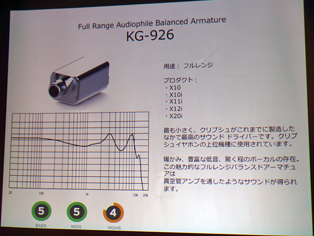 HOME > ニュース > AV&ホームシアターニュース AKシリーズ用リケーブルの発売も検討 <ヘッドホン祭>クリプシュ、新フラグシップ「X20i」など新製品群を試聴可能。発表会で特徴解説も 編集部:小野佳希 2015年10月24日 前の写真へ 次の写真へ 「KG-926」の解説 前の写真へ 次の写真へ この写真の記事へ 関連リンク 秋のヘッドホン祭2015 秋のヘッドホン祭2015 レポート一覧