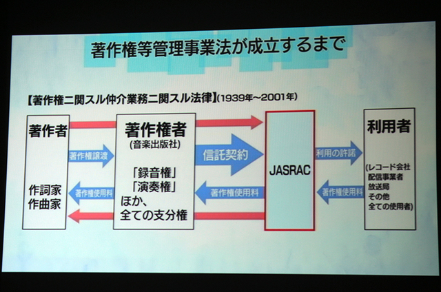2001年に「著作権事業等管理事業法」が施行され、JASRAC以外の業者も著作権管理事業を行えるようになった
