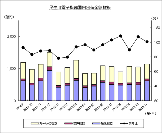 民生用電子機器の国内出荷、11ヶ月連続マイナス − JEITA発表