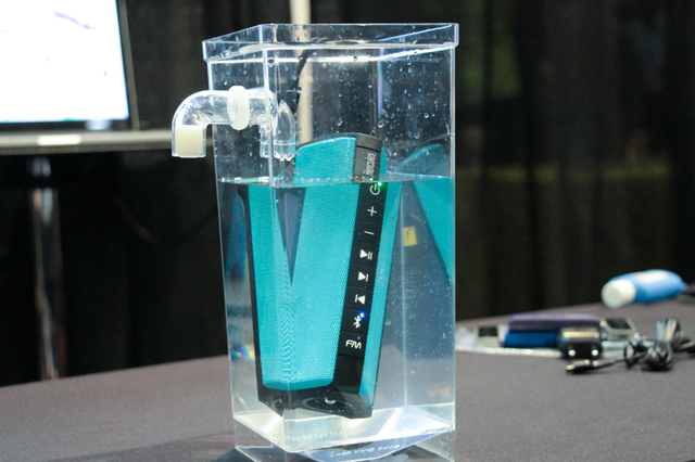 HOME > ニュース > AV&ホームシアターニュース 前夜祭イベントにVRやIoT関連の展示が多数 CES Unveiled - “飛行機型”ドローンやプロジェクター内蔵ロボットが登場。マーシャルの新ヘッドホンも 編集部:小澤貴信 2016年01月06日 前の写真へ 次の写真へ 防水タイプのBluetoothスピーカーが複数見られた 前の写真へ 次の写真へ この写真の記事へ 関連リンク 2016 International CES 「CES 2016」Phile-web記事一覧