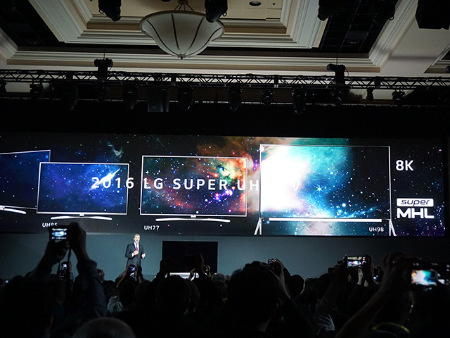 HOME > ニュース > AV&ホームシアターニュース HDR/ドルビービジョン対応 <CES>LG、ハイエンド4K有機ELテレビ「LG SIGNATURE」発表 一条真人 2016年01月06日 前の写真へ 8Kが1機種、4Kが3機種の計4機種をラインナップする 前の写真へ この写真の記事へ 関連リンク 2016 International CES 「CES 2016」Phile-web記事一覧