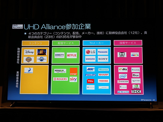 HOME > ニュース > AV&ホームシアターニュース パナソニック小塚氏、ソニー篠原氏に訊く <CES>4K/HDRテレビの認定基準“Ultra HD プレミアム”登場の背景とは?UHDAのキーマンに直撃! 折原 一也 2016年01月12日 前の写真へ 次の写真へ 「UHD Alliance」の取締役会社、貢献会員会社の構成 前の写真へ 次の写真へ この写真の記事へ 関連リンク 2016 International CES CES2016 レポート記事一覧