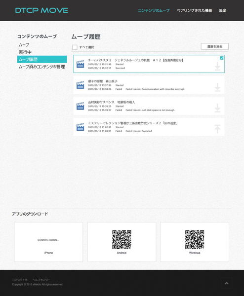 HOME > ニュース > AV&ホームシアターニュース 対応ソフトを1,000円でリリース SynologyのNASでDTCP-IP視聴/ムーブやリモート視聴が可能に 編集部:風間雄介 2016年01月13日 前の写真へ 次の写真へ ムーブの履歴も確認できる 前の写真へ 次の写真へ この写真の記事へ 関連リンク Synologyのニュースリリース sMedioのニュースリリース