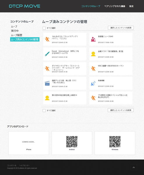 HOME > ニュース > AV&ホームシアターニュース 対応ソフトを1,000円でリリース SynologyのNASでDTCP-IP視聴/ムーブやリモート視聴が可能に 編集部:風間雄介 2016年01月13日 前の写真へ ムーブ済みコンテンツの管理 前の写真へ この写真の記事へ 関連リンク Synologyのニュースリリース sMedioのニュースリリース