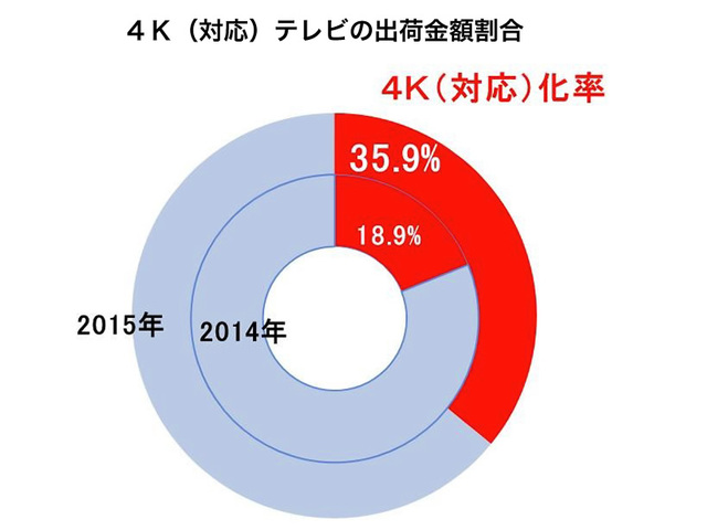 '15年の国内テレビ市場、4Kモデル大幅伸長で金額構成比が4割に