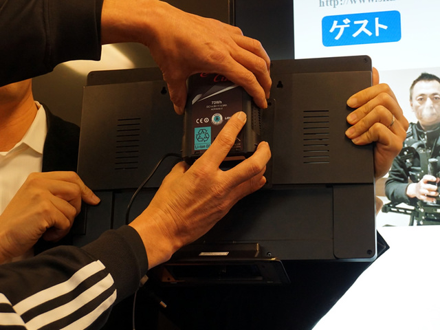 別売アクセサリーで背面へバッテリーを取り付けて駆動させることも可能