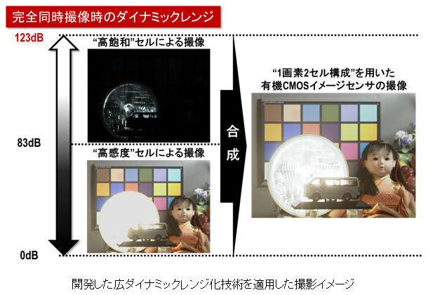HOME > ニュース > AV&ホームシアターニュース 回転するプロペラの文字も歪みなく撮影可能 パナソニック、有機CMOSセンサーを開発。従来比100倍のダイナミックレンジ実現 編集部:小澤 麻実 2016年02月03日 前の写真へ 次の写真へ 1画素内に異なる感度の電極等を設置できるため、一度の撮像で露光の異なる画像を撮影・合成が可能。これによりダイナミックレンジ123dBを実現した 前の写真へ 次の写真へ この写真の記事へ 関連リンク 新有機CMOSセンサーのニュースリリース 光電変換制御シャッター技術のニュースリリース