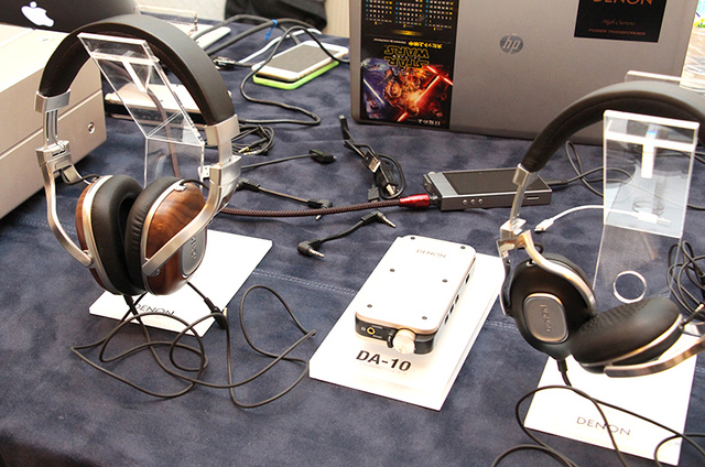 木製ハウジングを採用したポータブルヘッドホン「AH-MM400」(左)やポタアン「DA-10」(中央)なども登場