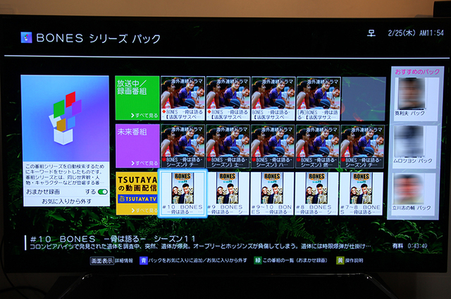 録画した分やこれから放送される分に加え、TSUTAYA TVで配信中のコンテンツも表示