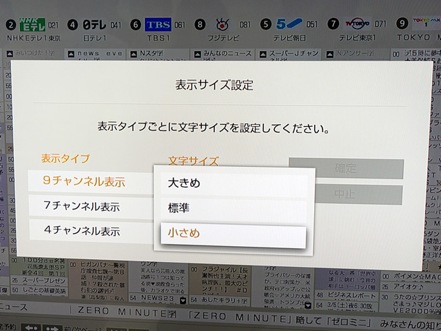 表示するチャンネル数と文字サイズは変更も可能