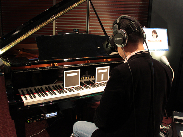 このようにOculusとヘッドホンを装着してピアノの前に座ると、