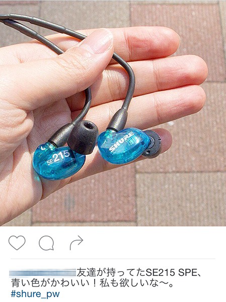 HOME > ニュース > AV&ホームシアターニュース 3月18日から3月30日まで Shure製品を撮って「SE215 Special Edition」をもらおう!Phile-web限定キャンペーン ファイル・ウェブ編集部 2016年03月18日 前の写真へ 大人気のイヤホン「SE215 SPE」が手に入るチャンス! 前の写真へ この写真の記事へ 関連リンク SE215の製品詳細 完実電気 SHURE JAPAN