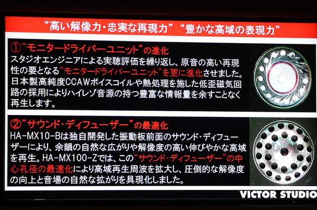 HOME > ニュース > AV&ホームシアターニュース エンジニアがチューニング、税込24,800円 JVCとビクタースタジオがコラボした“ハイレゾ対応”スタジオモニター「HA-MX100-Z」 編集部:小澤 麻実 2016年03月17日 前の写真へ 次の写真へ CCAWコイルの採用や、サウンド・ディフューザーの中心孔径最適化なども図った 前の写真へ 次の写真へ この写真の記事へ 関連リンク 本製品の詳細&販売サイト VICTOR STUDIO HD-Music.