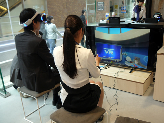 4/1(金)〜4/3(日)の行なわれるオープニングイベント「PlayStation VR体験会」のコーナーでは、2016年10月発売予定のPS VRをいち早く体験できる。VRヘッドセットをかぶり、プレーヤーの360度全方向を取り囲む3D空間を通じてゲームの世界に入り込む感覚を味わえる