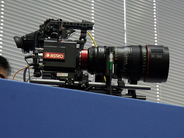 アストロデザインの8Kカメラで会見を撮影し会場の8Kディスプレイに表示する試みも
