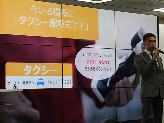 Japan Taxi(株)COO兼コーポレート部長 濱暢宏氏は、RoBoHoNに話しかけてタクシーを呼べるアプリの開発を発表