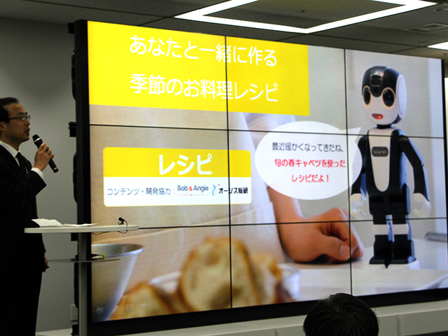 (株)オージス総研 サービス事業本部デジタルコンテンツサービス部長 山川大介氏は、RoBoHoNと会話しながら料理を作るレシピアプリの開発を発表