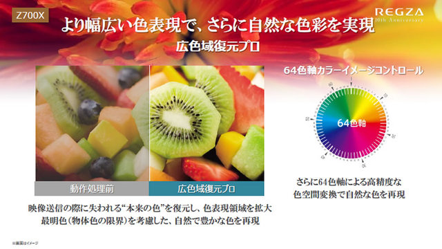64色軸の色空間処理を行う「4K広色域復元プロ」を搭載